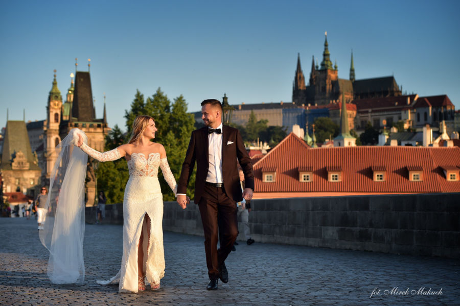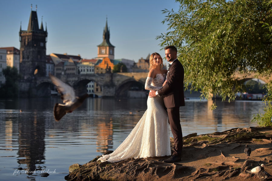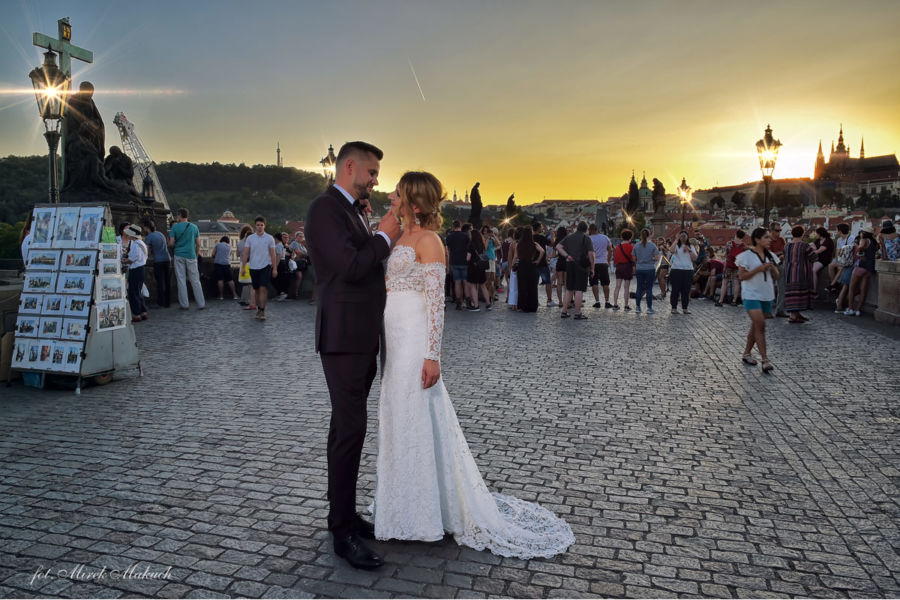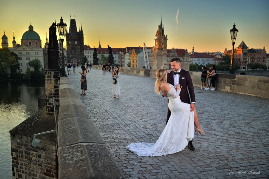 Adrianna i Krzysztof to niesamowita młoda para. Gdy dowiedziałem się , że będę ich fotografem ślubnym od razu wpadł mi pomysł wyjazdu na plener ślubny w nietuzinkowe miejsce. Zaproponowałem sesję ślubną w stolicy Czech, Pradze. Parze młodej spodobał się pomysł no i plener się odbył. Spędziliśmy tam dwa dni wykorzystując urokliwe zabytki Pragi. Tłumy ludzi doskonale wypełniały drugi plan na zdjęciach , choć niekiedy także i przeszkadzały. W drugim dniu pobytu zaplanowaliśmy sesję o wschodzie słońca, kiedy na moście Karola jest naprawdę mało ludzi. Uważam , że to był doskonały pomysł na sesję ślubną i warto było jechać tyle kilometrów , jest to w końcu pamiątka na całe życie. Fotografia ślubna opolskie. Fotograf na ślub z Oławy. Fotografia ślubna Brzeg, Nysa i Opole. Fotografia ślubna Oleśnica, Syców i Kępno. Kluczbork-fotograf ślubny. Ciekawe miejsce na plener ślubny? Pomysł na sesję ślubną.