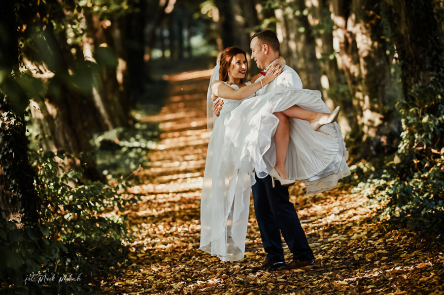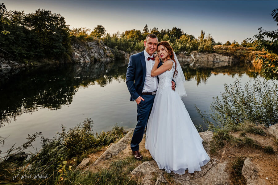 Tym razem moja ostatnia sesja ślubna odbyła się w całości na tzw łonie natury. Trochę zieleni , trochę skałek i zdjęcia wychodzą jak malowane. Te foty utwierdzają mnie w przekonaniu , że nie trzeba jechać setki kilometrów w bajkowe miejsca : zamki, pałace nad morze czy w góry aby zrobić ciekawe kadry. Wystarczy znaleźć interesujący fragment otoczenia z nastrojowym oświetleniem , który ma służyć jako tło i dodatek do głównego motywu zdjęcia czyli Pary Młodej. Marta i Artur zdecydowali się na taką wersję ich sesji ślubnej i mam nadzieję , że będą zadowoleni ze zdjęć w moim wykonaniu. Kilkugodzinną sesję ślubną wykonaliśmy w okolicach Strzelina woj. dolnośląskie. Zaangażowanie i energia Pary Młodej w dużym stopniu pomogła nam wspólnie wykonać sesję podczas, której panowała wspaniała atmosfera. Efekt poniżej..