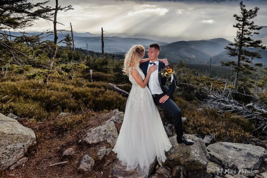 Karolina i Kuba na miejsce swojej sesji ślubnej wybrali sobie góry. Na pomysł przyszedł mi wyjazd na Czarną Górę w okolicy Stronia Śląskiego w masywie Śnieżnika. Nie trzeba było dużo się przemieszczać aby wykorzystać przepiękne panoramy Sudetów Wschodnich. Na dodatek październik tego roku okazał się bardzo łaskawy pokazując oblicze prawdziwej polskiej jesieni. Główną część sesji wykonaliśmy na szczycie Czarnej Góry wjeżdżając na szczyt gondolą o dobrze brzmiącej nazwie Luxtorpeda , a pozostałą część w okolicach Lądka Zdrój. #sesjaslubnawgorach #plenerslubnywgorach @fotografiamakuch #superfoto-makuch.pl #fotografiaślubnaopolskie #fotografiaslubnawroclaw #fotograf-slubnyolawaibrzeg #dobry_fotograf_nysa. Fotografia ślubna wroclaw.Fotograf weselny z Opola. Dobry fotograf Kępno Syców i Oleśnica.